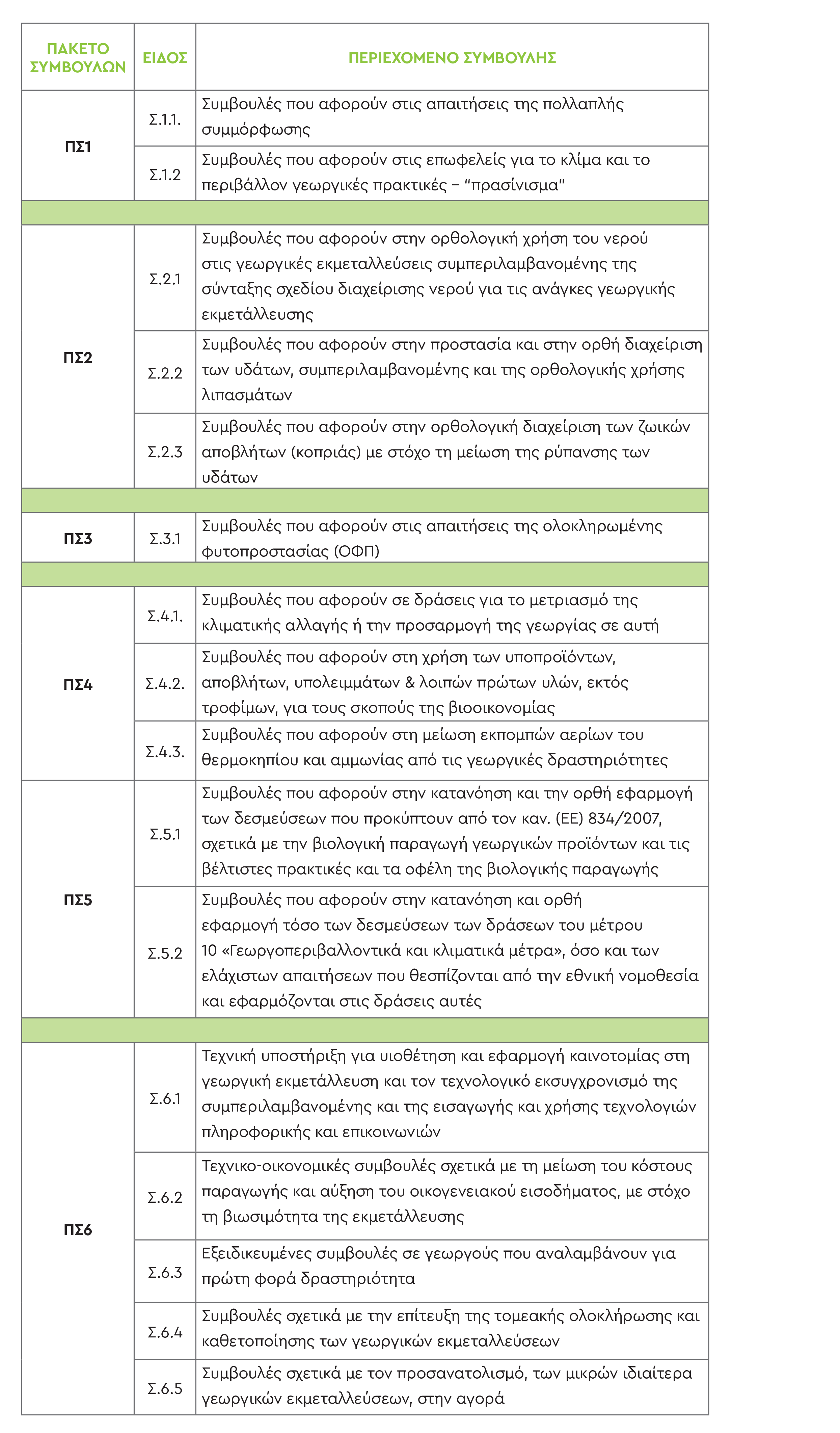 Ο υπεύθυνος γεωπόνος-γεωργικός σύμβουλος σε συνεργασία με τον ωφελούμενο επιλέγει μια συμβουλή από το πακέτο των έξι (6) συμβουλών η οποία ανταποκρίνεται στα ενδεχόμενα προβλήματα της γεωργικής του εκμετάλλευσης